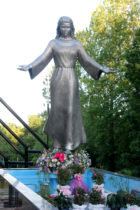 This 14-foot stainless steel sculpture of Mary, Mother of the Church, adorns the national shrine of the same name in Laurie, Mo. Sculptor Don Wiegand, who created the sculpture, described the subject of his work as “an ageless lady, depicting love, balance and grace.”
