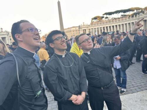 Among the throngs of people listening in person to Pope Leo from the square, and present for the new pope’s “urbi et orbi” blessing, were three other Americans – one priest, one deacon, and one seminarian, all from the Diocese of Nashville, Tennessee, and with ties to the Pontifical North American College. One of the trio, Deacon Christian Hamrick, a fourth year at the NAC, called it “a historic day.”