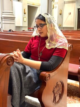 Before each counseling foray, Bernadette Patel tries to attend Mass to calm her nerves and seek God’s protection. Here, she prays following Mass the morning of Jan. 15 at St. Agnes Church near Grand Central Terminal in Midtown Manhattan. (Photo: Bill Miller)