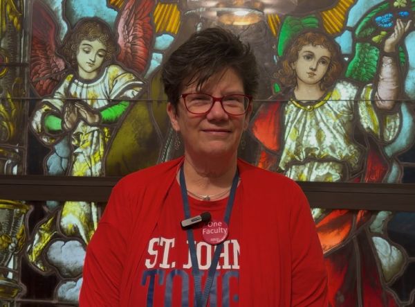 Kathryn Shaughnessy, a professor and librarian at St. John’s University, traveled to Manhattan to pray for St. John’s success.