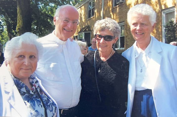 Bishop Chappetto’s blog honors his elementary school teachers, the Sisters of St. Joseph of Brentwood. He is shown here during a 2012 celebration of the community with (from left) Sister Anna Desiderio, Sister Letitia Lake, Sister Francis Claire Gowen. (Photo: Courtesy of Bishop Chappetto)