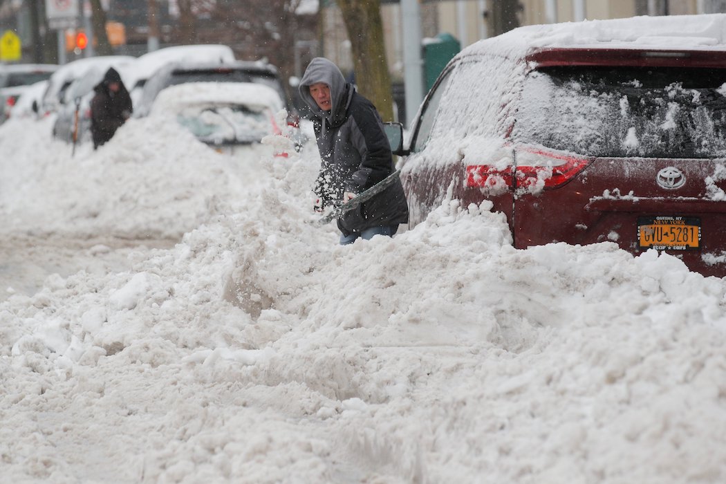 A man in the Brooklyn borough of New York City removes snow from a car during a snowstorm in 2021. (Photo: CNS/Brendan McDermid, Reuters)