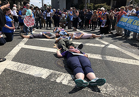 The demonstration was part of a national “Stop the Inhumanity!” campaign created by a Catholic coalition of human rights organizations, including First Friends of New Jersey and New York, Faith in Action and Pax Christi USA. Organizers hope to mobilize the faithful to turn prayer into peaceful activism.