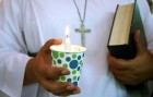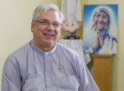 Pope Francis greets pizza makers from Naples during a pizza lunch for the poor after the canonization of St. Teresa of Calcutta at the Vatican Sept. 4. Three thousand pizzas were served by Missionaries of Charity nuns and brothers to about 1,500 poor people who had come to the canonization Mass from shelters, dormitories and soup kitchens the order runs throughout Italy.