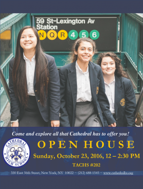 For more information, contact the director of admissions, Johanna Velez at 212-688-1545 ext. 224 or jcastex@cathedralhs.org. Visit our website at www.cathedralhs.org.