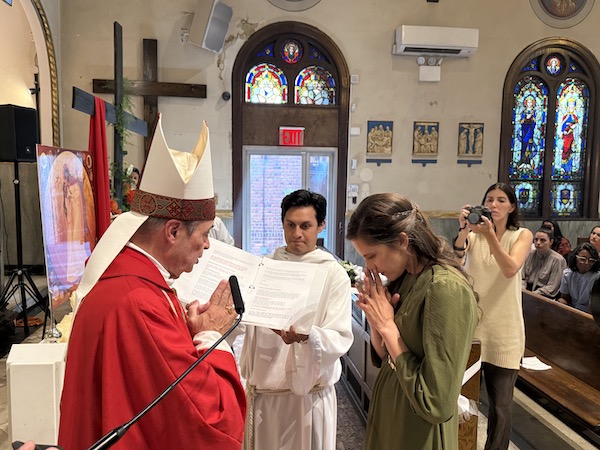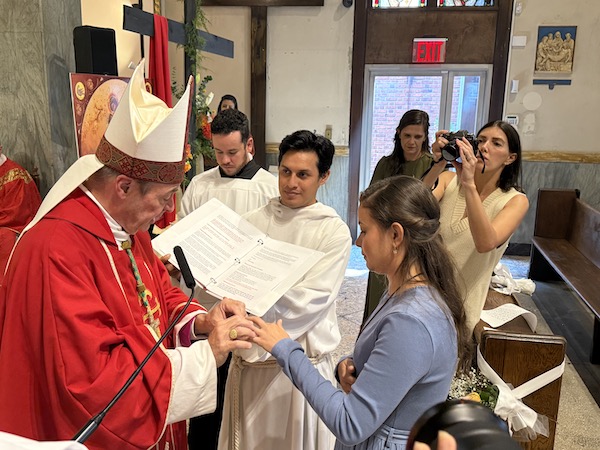 Now, 10 years later, Bezerra joined Bárbara Tavares de Freitas, who has also previously made her temporary vows of celibacy, and had their life of virginity consecrated by Bishop Robert Brennan during a Mass at San Damiano Mission Church in Williamsburg on Sept. 14.