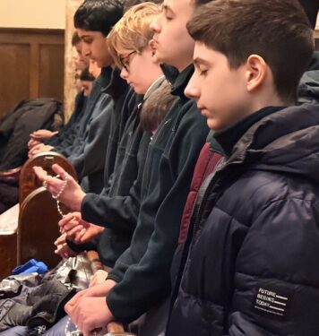 Father Robert Mucci encourages students to embrace moments of silence and prayer as they grow in understanding the mystery of Christ’s presence in the Eucharist.
