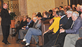 He told the men that “Pope Francis is “waging war on mediocrity in the priesthood and the episcopacy” and ushering in “a new moment of a deeper sharing of the Spirit and sincerity with our brokenness.”