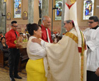 Bishop Octavio Cisneros celebrated the Mass of the Feast of St. John the Baptist at the Co-Cathedral of St. Joseph June 24. Although St. John the Baptist is the patron of Puerto Rico, the Mass was a celebration of faith and cultural heritage for Mexican immigrants from San Juan Tianguismanalco, a municipality in the state of Puebla, Mexico. The folkloric group Tecuanes de Acatlán danced in honor of St. John in front of the Co-Cathedral. Then they lead a procession through the streets of Brooklyn. (Photos © Jorge Dominguez)