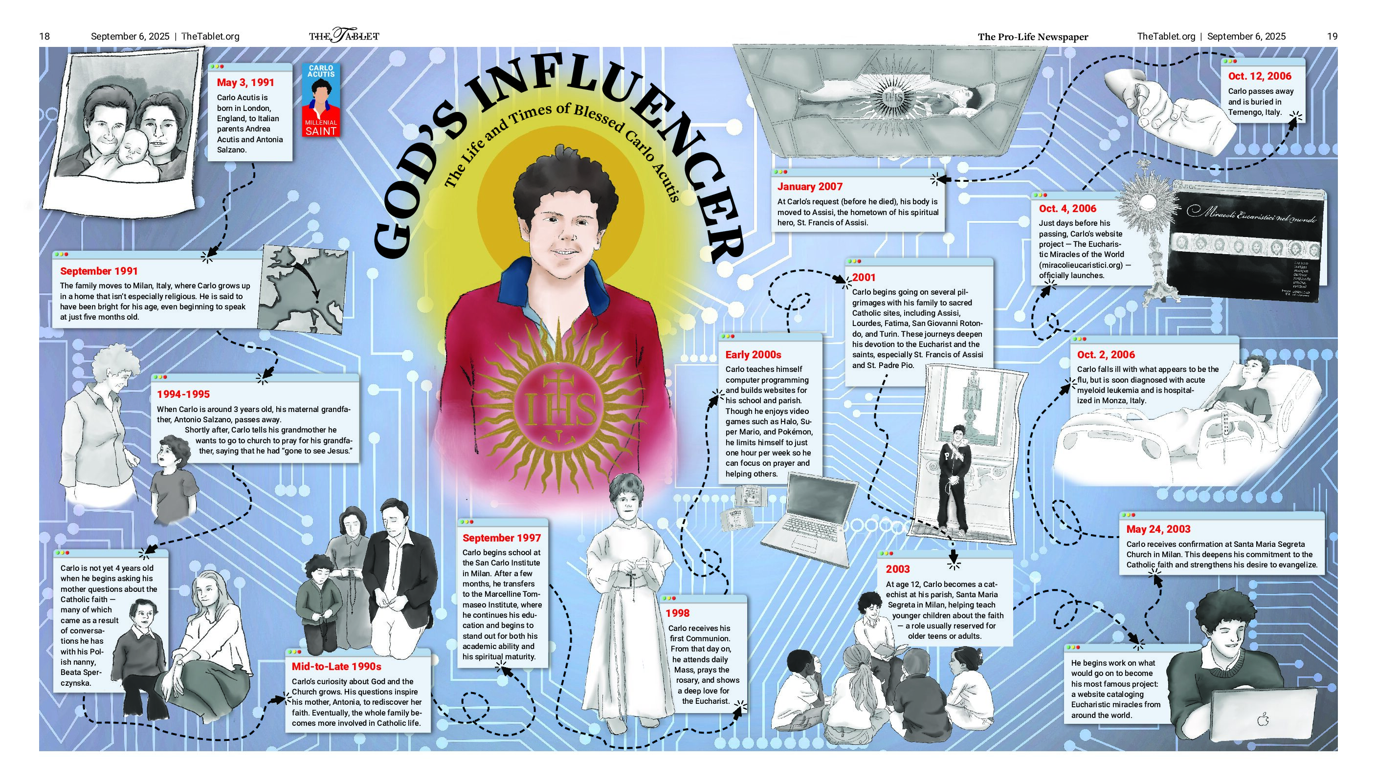 On Sept. 7, 2025, the Catholic Church canonized its first millennial saint: Carlo Acutis. The 15-year-old from Milan, Italy was a computer enthusiast who used his tech skills to create websites documenting Eucharistic miracles and Catholic saints until his death from leukemia in 2006 at age 15.