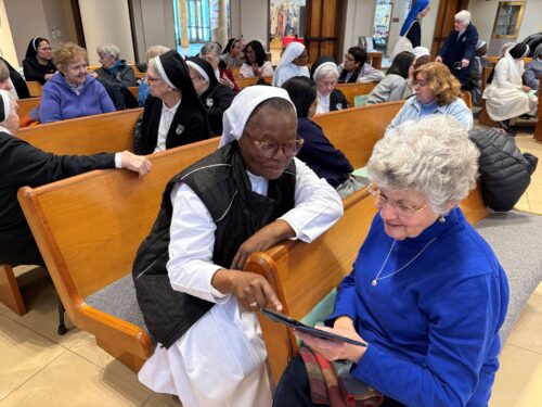 Sisters who attended the World Day for Consecrated Life Jan. 31 at St. Shon’s University did not cluster in their own groups. They freely mingled with joy and laughter, enjoying renewed acquaintances and making new friends as seen in this photo and the one below.