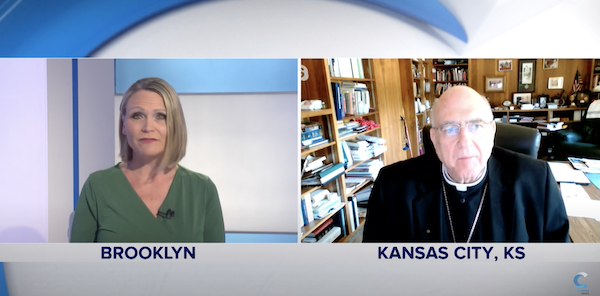 Archbishop Joseph Naumann of Kansas City, Kansas was asked by Currents News anchor Christine Persichette about the ongoing violence since the Supreme Court decision overturning Roe v. Wade was leaked. Noting that there have been “more than 60 attacks on pro-life organizations and people” in the eight weeks since, Persichette asked the archbishop when he thinks it will stop.