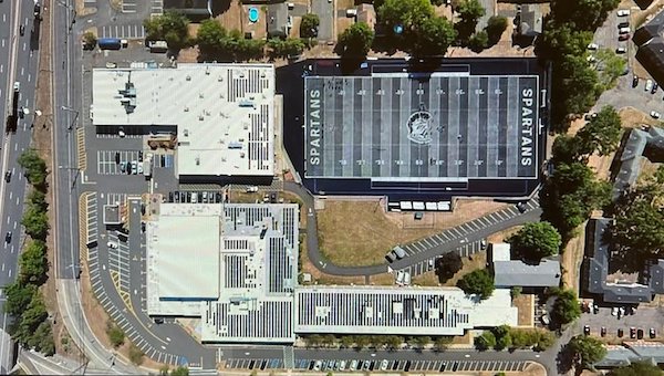 “Even though the solar panels are not visible from ground level, they are in fact there and they will be supplying renewable energy,” he said of the 1,228 solar panels lining the roofs of the school’s two buildings.