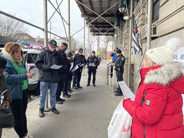 FAR ROCKAWAY — To demonstrate support and appreciation for New York’s Finest, members of a newly formed group, called the NYPD Prayer Warriors, gather outside police precincts on Saturday mornings to pray, sing hymns, and say a heartfelt “thank you” to cops.