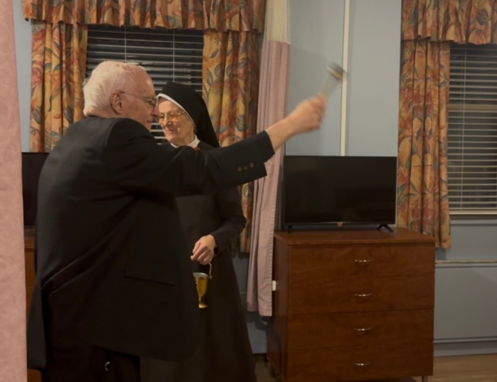 Auxiliary Bishop Emeritus Raymond Chappetto began the evening with a prayer, and after the ribbon-cutting ceremony, he blessed the hall. He said he anticipates the Carmelite nuns, who serve as caregivers at Ozanam, will have a positive impact on the new facility’s residents.