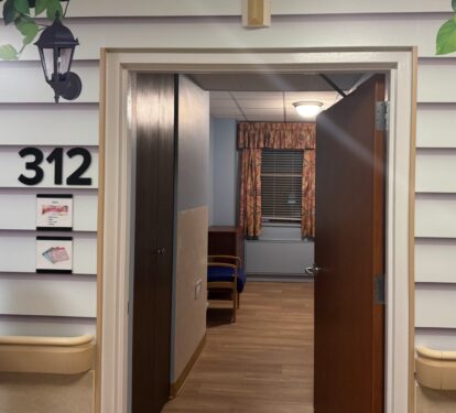 Outside each resident’s room are cards designed to teach caregivers a little about the occupant to help spark conversations and recall memories.