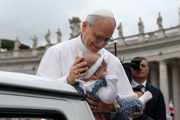 Pope Leo arrived in the popemobile for the audience, riding through the crowd in St. Peter’s Square and stopping often to bless infants, tracing the sign of the cross on their foreheads.