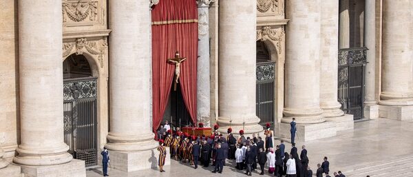 VATICAN CITY – To the chanting of Christ’s promise, “I am the resurrection and the life; whoever believes in me, even if he dies, will live,” the mortal remains of Pope Francis were carried into St. Peter’s Basilica by 14 pallbearers.