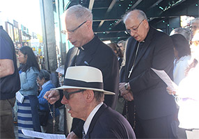 JACKSON HEIGHTS — Bishop Nicholas DiMarzio joined a group of about 50 pro-life activists on Sept. 21 for Mass and Holy Adoration at St. Joan of Arc Parish, Jackson Heights, followed by a rosary march to a local abortion clinic in the neighborhood, all part of the monthly rally organized by Helpers of God’s Precious Infants.