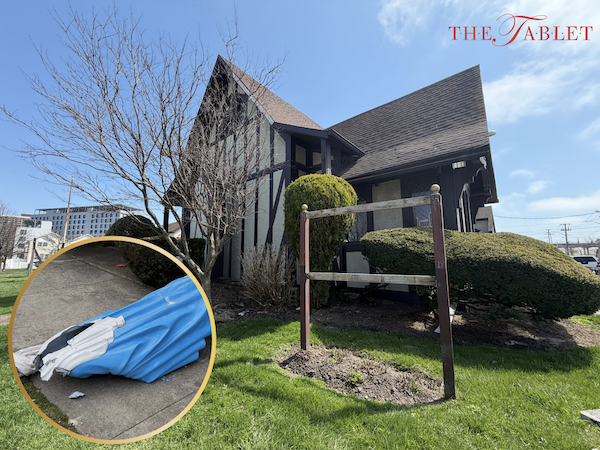 Father Frank Shannon, pastor of St. Mary Star of the Sea and St. Gertrude (the churches are part of the same parish), said security cameras captured images of a lone vandal smashing the 100-year-old statue with a boulder.
