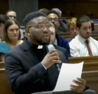 Rajae Clarke, a 2017 graduate of Cristo Rey Brooklyn High School, was one of three men on Aug. 9 who professed their “first vows” to the Jesuits — officially known as the Society of Jesus — at a special Mass in Syracuse, New York.
